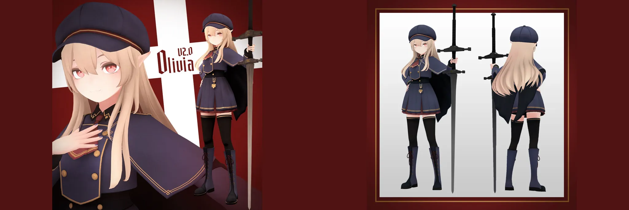 A. 올리비아는 근대 판타지 세계의 공직을 모티브로 디자인한 아바타로, 의상은 파란색을 기준으로 한 군복에 아르 데코 패턴을 일부 도입했습니다. VRChat의 아바타 중에서는 드물게 케이프 망토를 착용한 것이 특징이며, 컨스트레인트와 Physbone을 병용하여 비교적 깨끗하게 움직입니다. 처음에는 쿨 뷰티한 인상을 받기 쉽지만, 표정은 울거나 당황하는 얼굴 등을 세밀하게 만들어서 그런 갭을 느낄 수 있는 요소도 즐길 수 있는 아바타라고 생각합니다.
