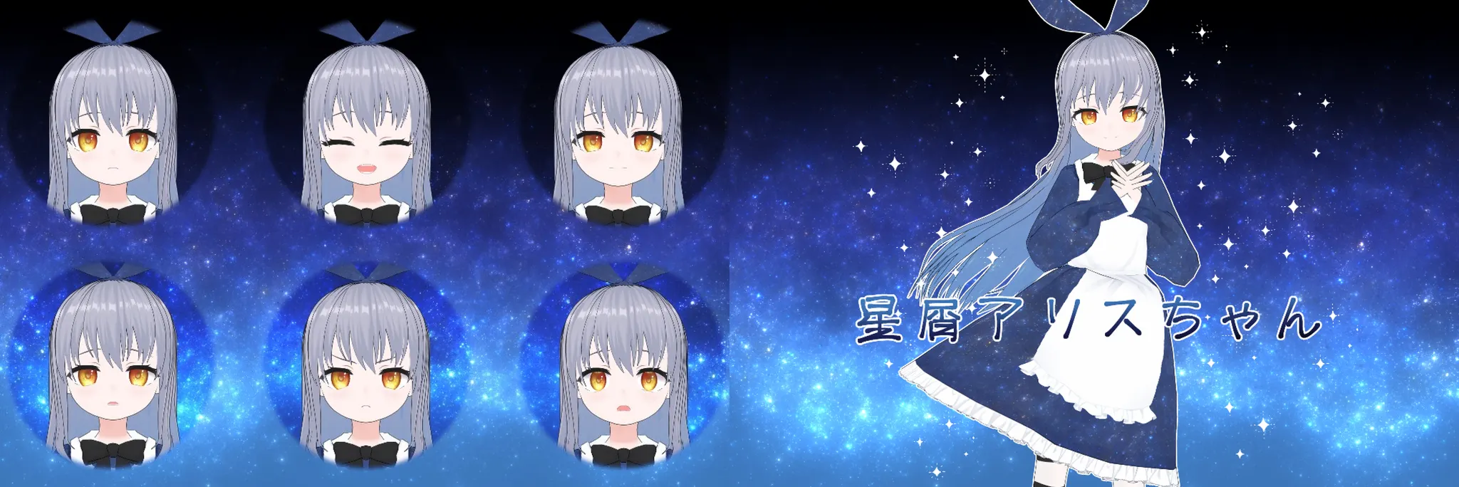 A. 별×앨리스라는 컨셉으로, 일반적인 앨리스 컬러는 아니지만, 앨리스 모티브로 보이도록 캐릭터 디자인을 했습니다.