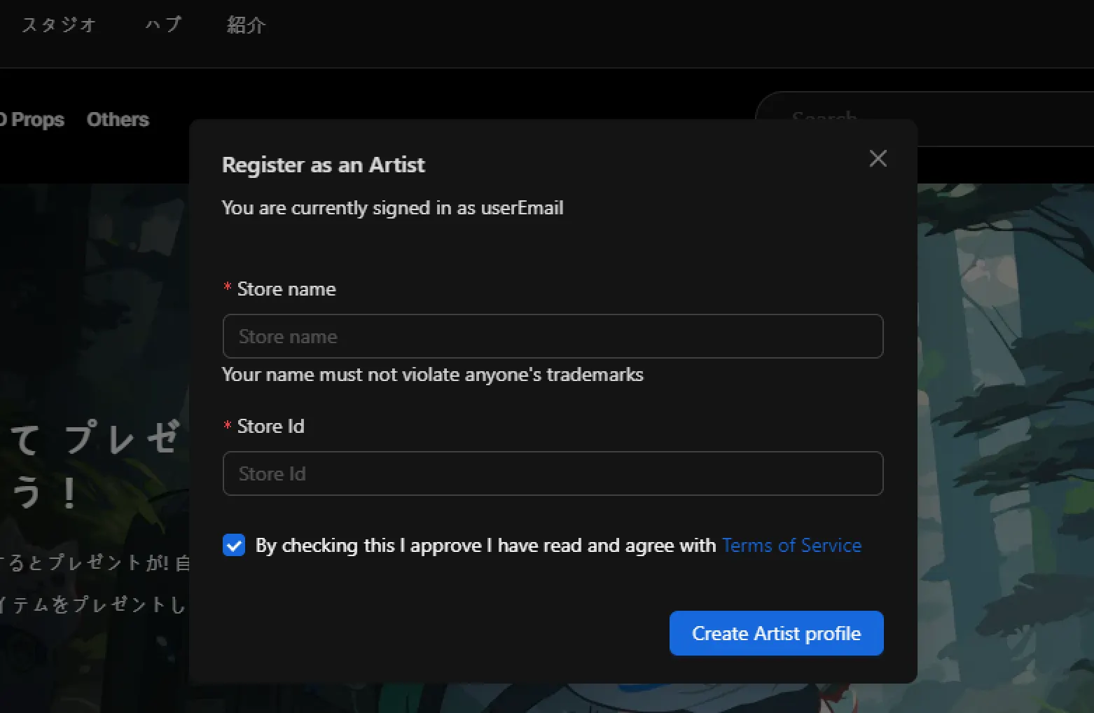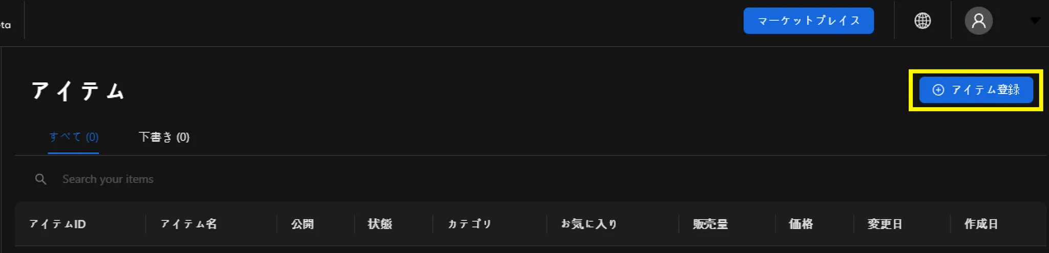 [アーティストダッシュボード] - [アイテム登録] で、アイテム情報を入力してください。