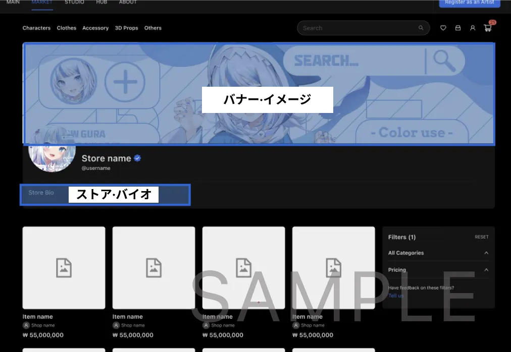 - アイテムページに表示される画像を設定します。 (720*720px 以上)